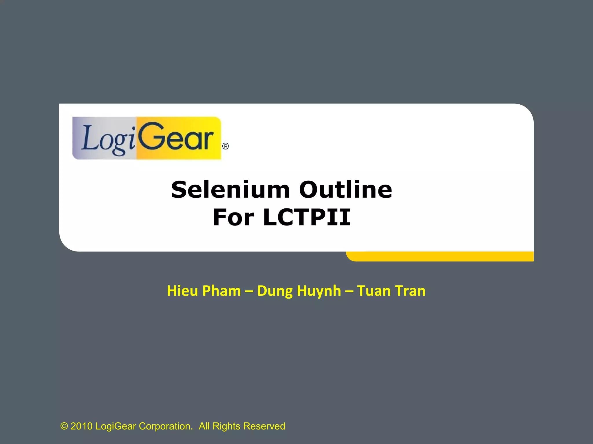 This document provides an overview of Selenium, an open source tool for automating web application testing. It describes Selenium IDE for recording and debugging tests in Firefox, Selenium RC for controlling browsers, and how to install and use Selenium IDE. The document also covers creating and running tests in Selenium IDE, locating elements, and introduces object-oriented programming concepts in Java. It presents TestNG as a testing framework for Java and outlines how to set up TestNG in Eclipse.