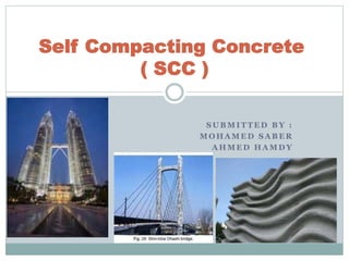 Self-compacting concrete (SCC) is a highly flowable concrete that can spread and consolidate under its own weight without vibration or compaction. Researchers at the University of Tokyo developed SCC in the late 1980s to address labor shortages. By the early 1990s, Japan was using SCC without vibration, and its use spread to other countries. SCC offers benefits like reduced labor costs, faster construction, and improved safety and finishes. It requires special mix designs using superplasticizers, viscosity agents, and mineral admixtures to achieve flowability, passing ability through reinforcement, and resistance to segregation.