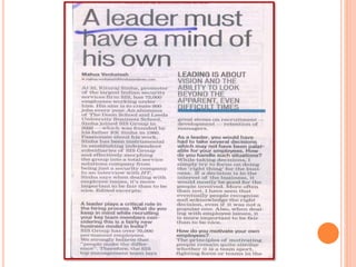 3. A leader stays focused on the higher purpose, engages in constant self-evaluation, and never lets monotony set in.