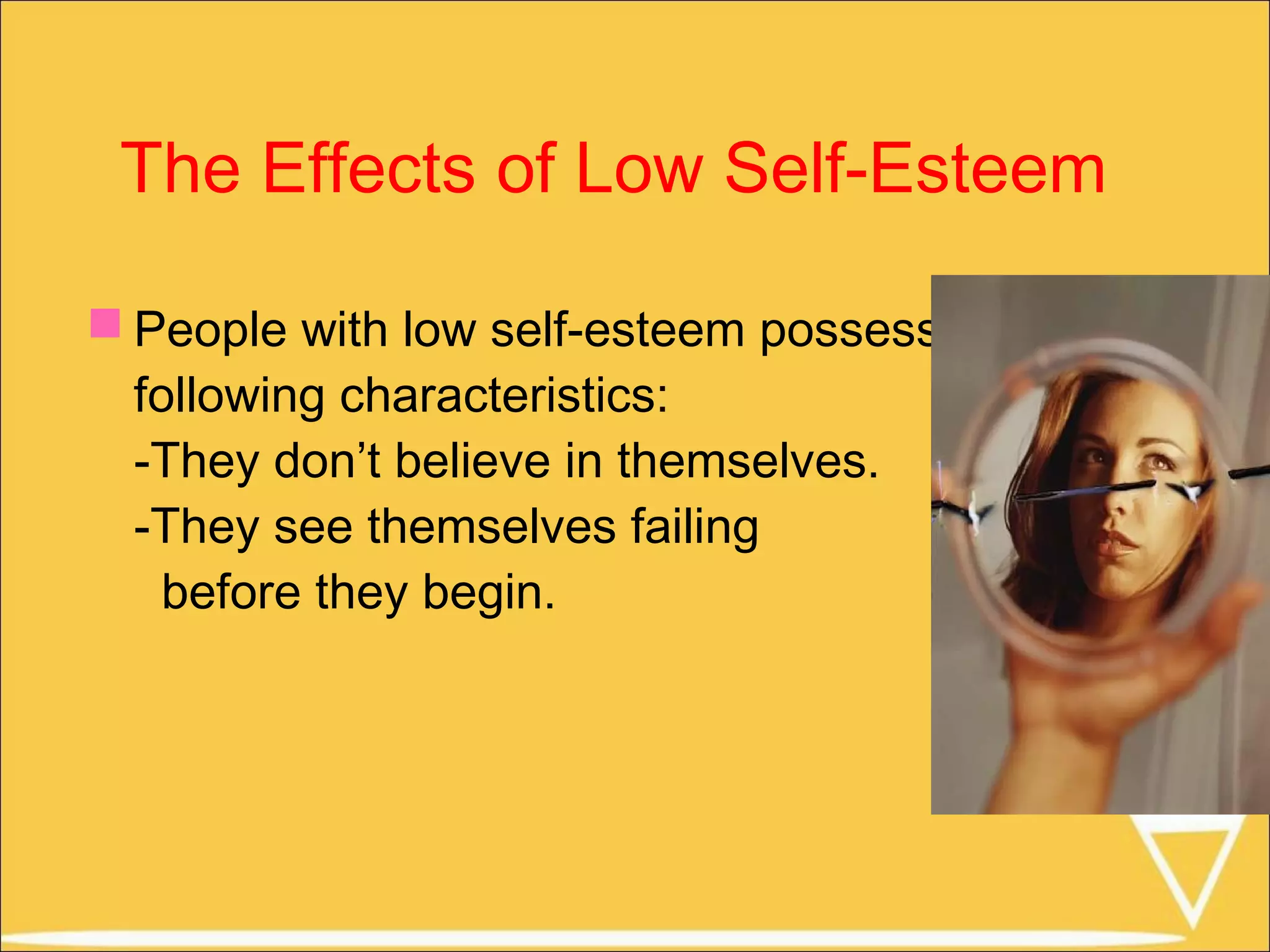 The document discusses self-esteem, defining it as how one sees and thinks about oneself. People with low self-esteem doubt themselves, see themselves as failures, have trouble forgiving mistakes, and believe they cannot achieve as much as others. In contrast, people with high self-esteem enjoy meeting new people, are not concerned with others' judgments, feel courageous in self-expression, and see their lives enriched through encounters. The document offers 11 steps to improve self-esteem, such as forgiving mistakes, focusing on positives, and improving relationships. Overall, self-esteem comes from life experiences and influences how one views themselves and acts in the world.