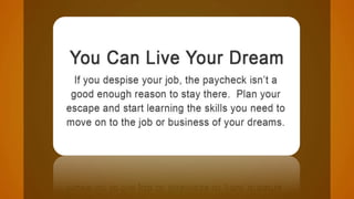 The document provides tips for improving self-esteem, including making a list of past successes, reviewing accomplishments and how they made you feel, pursuing hobbies and activities you enjoy, living according to your own values rather than others' expectations, taking action to face challenges, using hypnosis to change negative thought patterns, engaging in creative arts, and helping children build self-esteem through praise, listening, friendships, and celebrating successes.