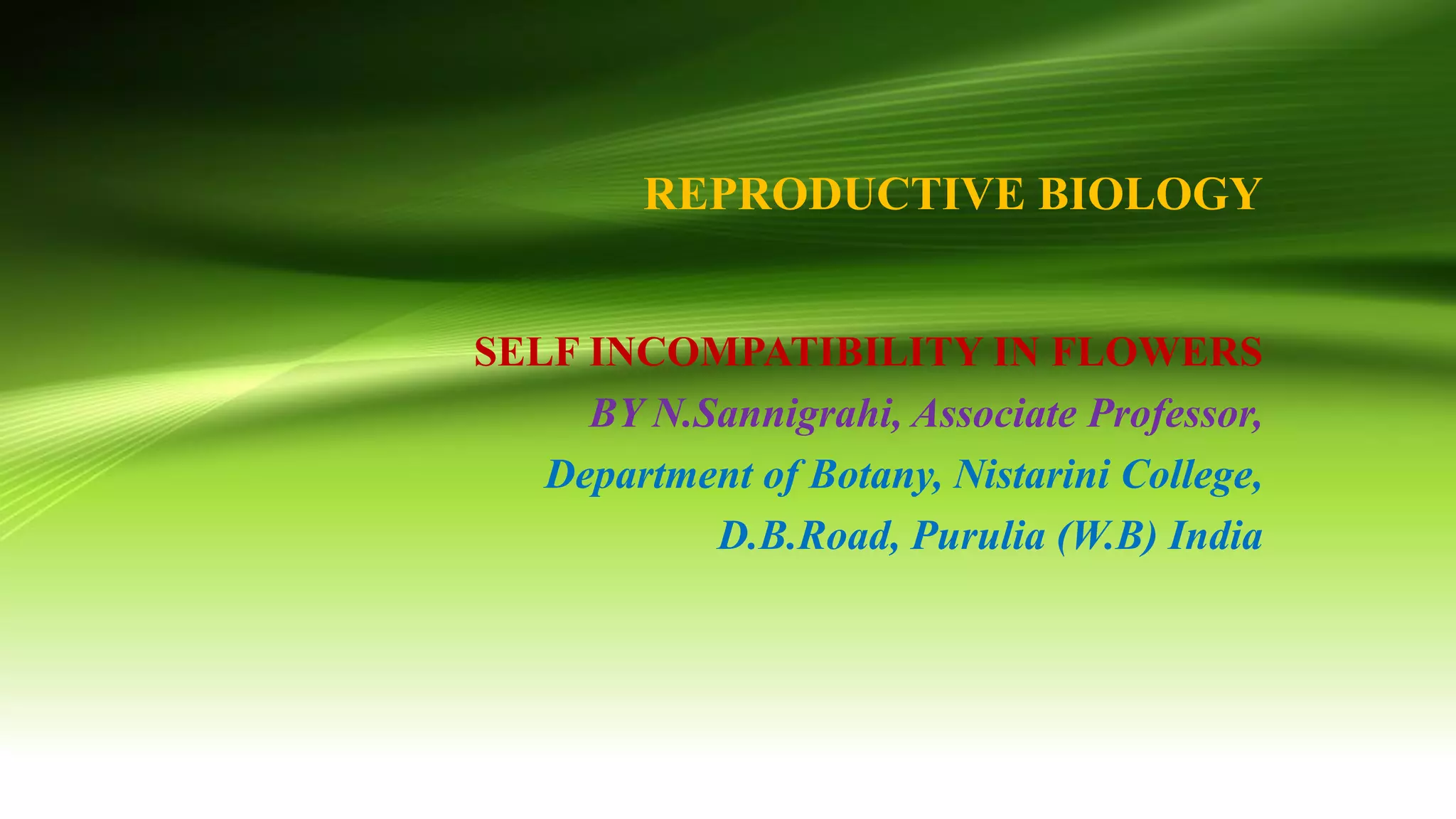 The document discusses self-incompatibility in flowering plants, a genetic mechanism that prevents self-fertilization to encourage outcrossing and maintain genetic diversity. It describes various types of self-incompatibility, including gametophytic and sporophytic systems, as well as methods to overcome these reproductive barriers. The significance of understanding self-incompatibility is emphasized in the context of agricultural breeding and crop production enhancements.