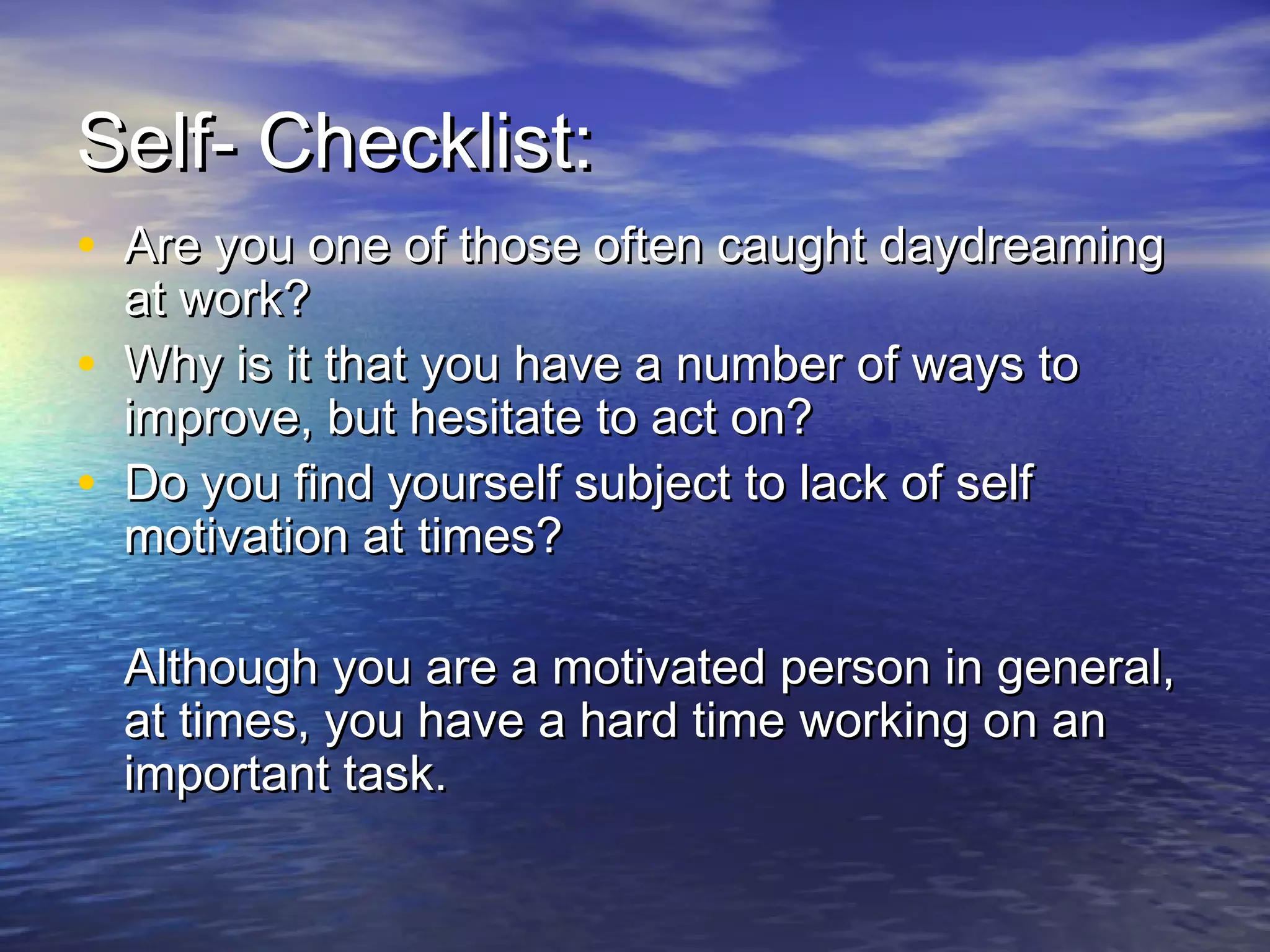 The document discusses techniques for improving self-motivation. It recommends setting specific goals and writing them down, focusing on the goals and avoiding distractions, not procrastinating by breaking goals into smaller tasks, sharing goals with others for support, staying positive by spending time with motivated people, and rewarding yourself for completing tasks to further motivate yourself. Maintaining a positive mindset that you are capable is also key to self-motivation.