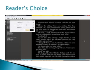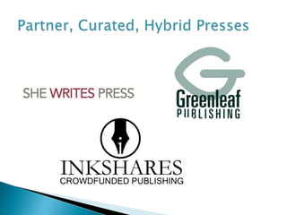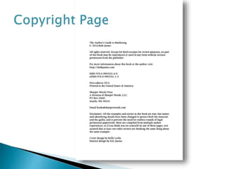 The document outlines the self-publishing process, including essential steps such as developmental and copy editing, creating front and back matter, and finalizing illustrations. It also discusses various publishing models, format choices, cover design, and interior layout considerations. Additionally, it emphasizes the importance of selecting the right services and marketing strategies to successfully publish a book.