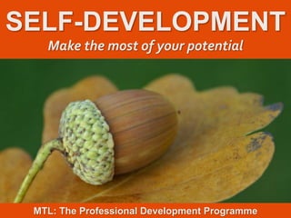 The document outlines key features of self-development, emphasizing the importance of attitude, ability, faith, industry, courage, luck, goal-setting, and perseverance in achieving personal growth. It highlights that success stems from a positive mindset, self-belief, and the willingness to work hard towards one's goals. Ultimately, it conveys that personal satisfaction and triumph come from striving towards and achieving one's potential, regardless of scale.