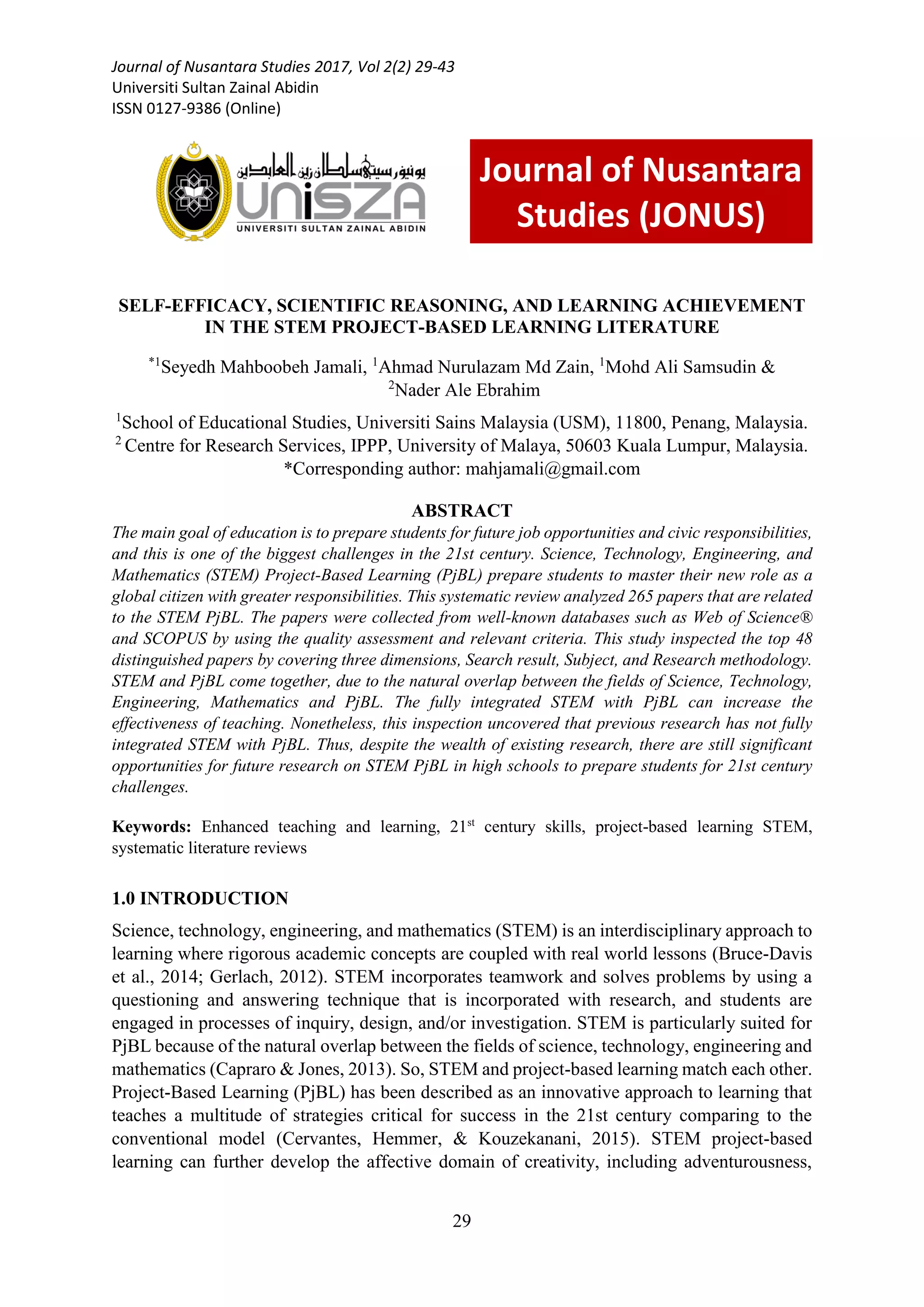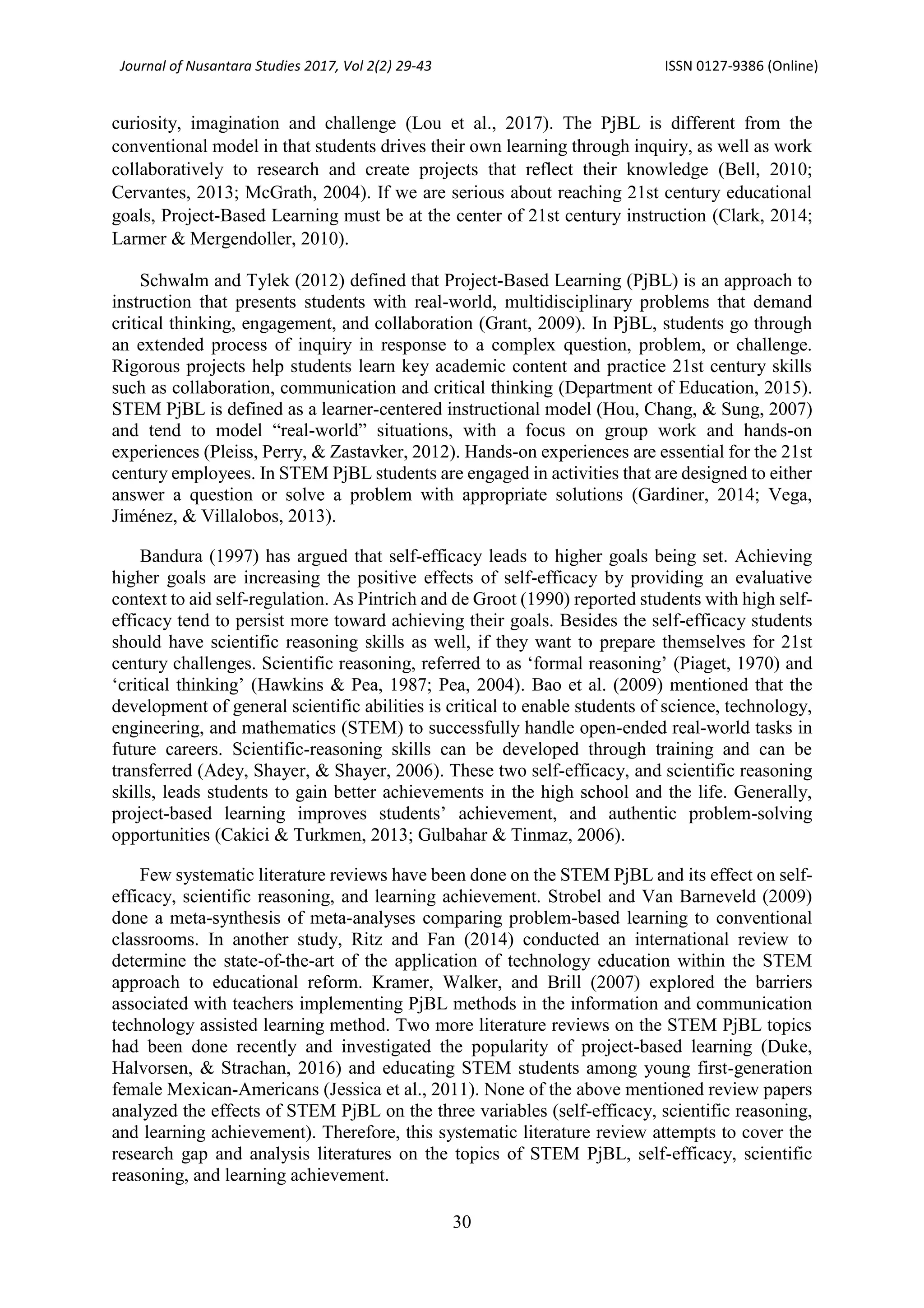 This systematic review explores the integration of STEM (Science, Technology, Engineering, Mathematics) and project-based learning (PJBL), analyzing 265 relevant papers to highlight their effects on self-efficacy, scientific reasoning, and learning achievement among high school students. It finds that while existing research indicates significant benefits of STEM and PJBL, there remains a lack of thorough integration within educational settings, presenting opportunities for further investigation. The study emphasizes the importance of these educational approaches in preparing students for 21st-century challenges and enhancing their skills for future careers.