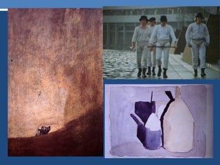 Color is perceived by the human brain based on light signals received from the external world. There are three properties of color: hue (the name of the color), value (lightness or darkness), and saturation (purity). In additive color systems like computer monitors, colors are created from beams of light using red, green, and blue light. In subtractive color systems like printing, colors are created by absorbing certain wavelengths using cyan, magenta, yellow, and black inks. The document provides examples of color theory concepts like primary colors, secondary colors, complementary colors, color wheels, and discusses how color is interpreted emotionally.