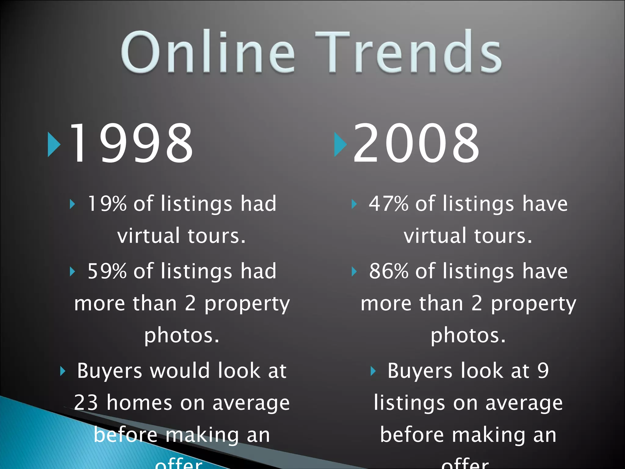 The document summarizes changes in home buying behavior between 1998 and 2008 and provides tips for improving search engine optimization (SEO) through creating unique content, linking to and from other credible sites, targeting specific keywords, and using blogs. It also briefly describes two listing syndication companies and their offerings.