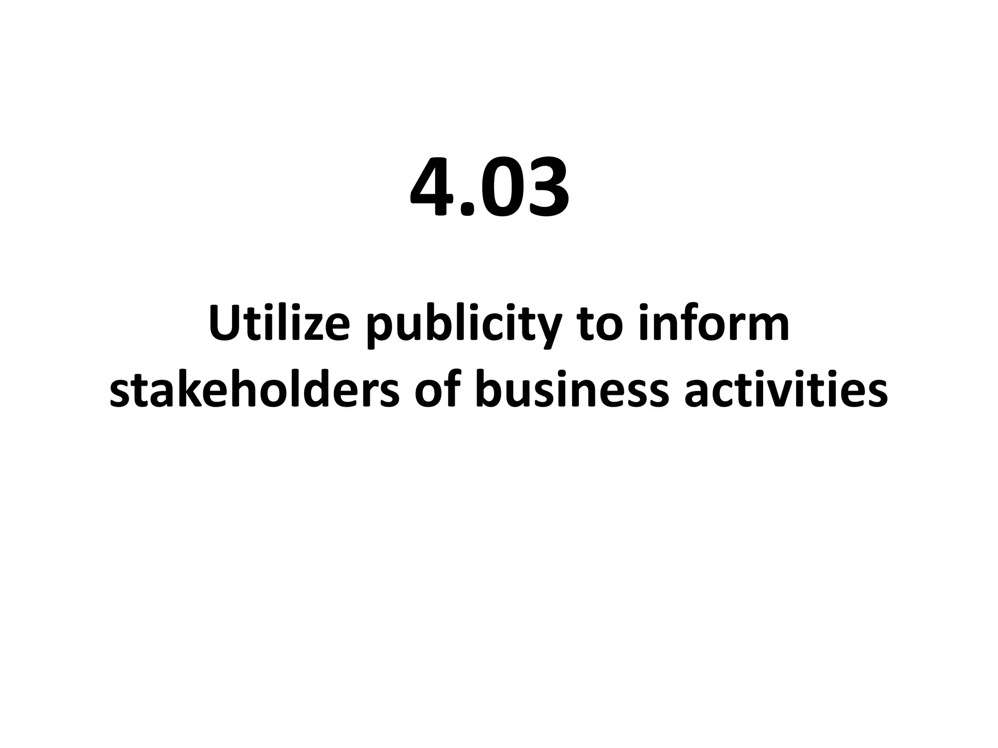 The document provides guidance on developing positive relationships with the media. It discusses the benefits of generating publicity for businesses and maximizing favorable news coverage. Some tips include planning a media day to give reporters advance access to events and venues, being honest and professional, and cultivating ongoing two-way communication to build trust. Developing proactive positive messages and planning how to respond to potential negative news is also recommended to handle relationships and crises effectively.