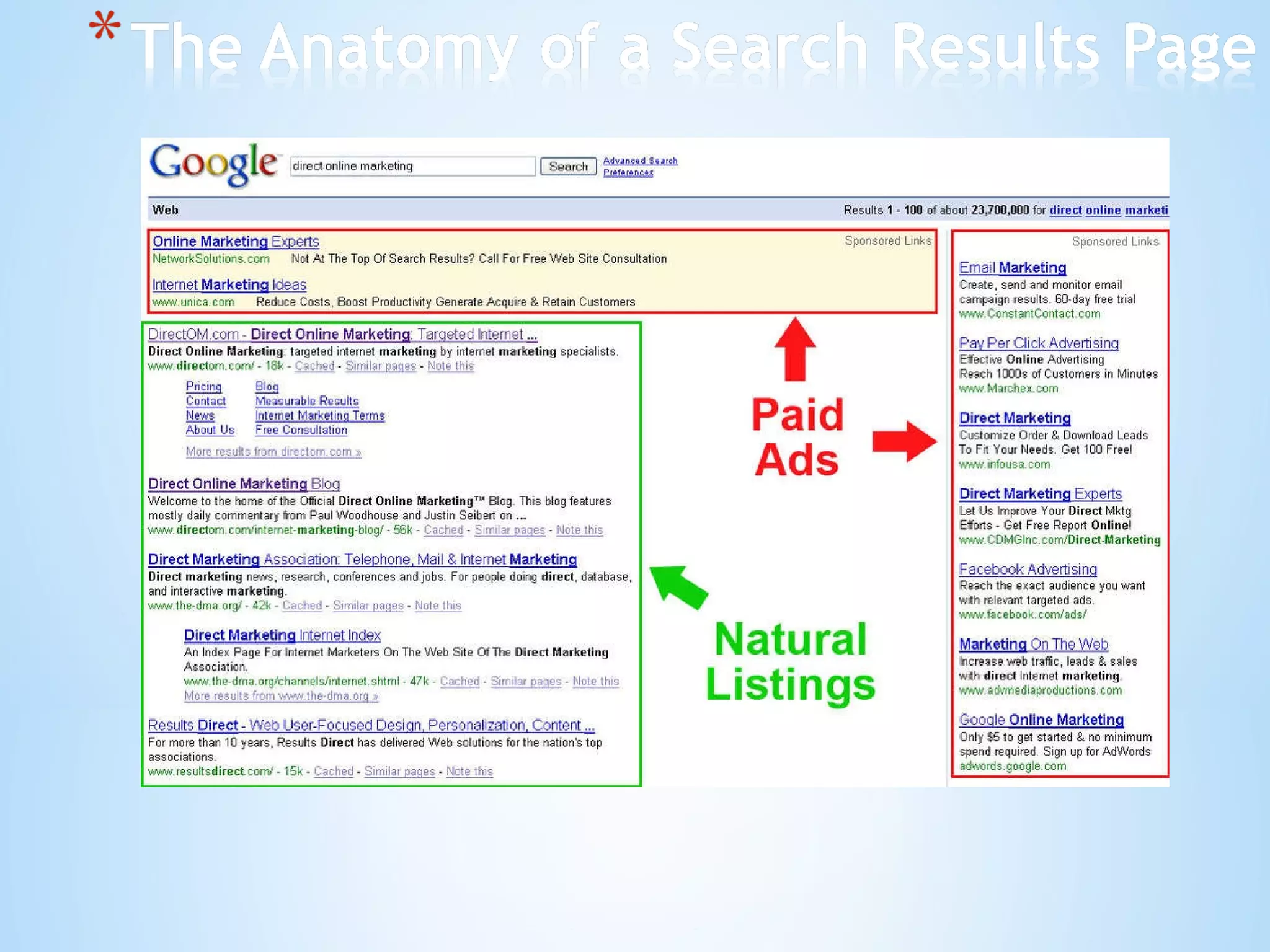 The document discusses the pros and cons of pay-per-click (PPC) advertising and search engine optimization (SEO). PPC advertising allows for immediate results and total control over ad placement but costs money per click. SEO takes longer to see results but clicks are free. The document provides tips for effective PPC campaigns, on-site SEO, and landing page design to improve click-through rates and user experience. Search engine marketing (SEM) combines PPC and SEO strategies.
