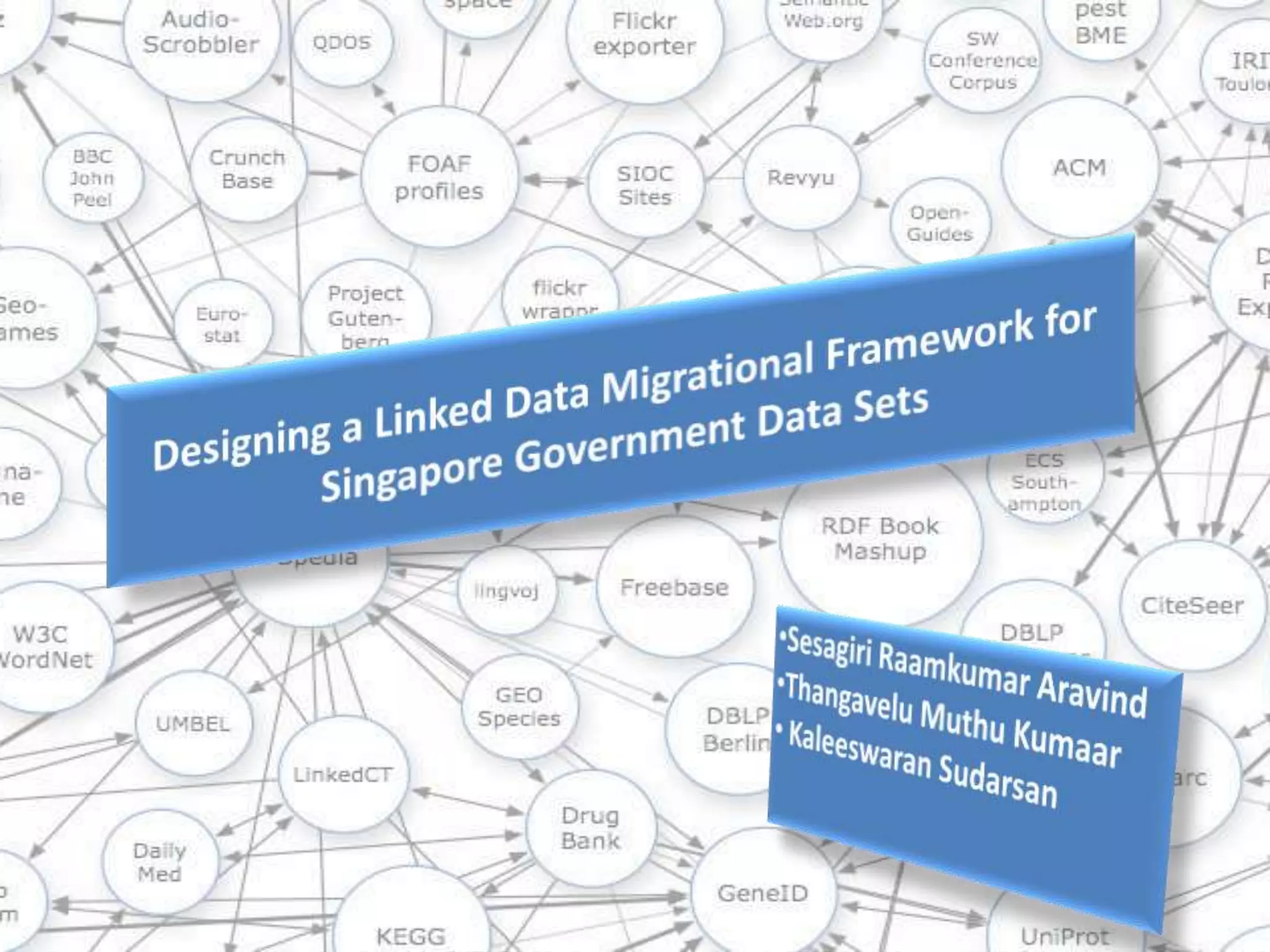 This document proposes an 8-step framework for migrating Singapore government data to a linked data format. The framework includes steps for specification identification, data set analysis, object modeling, ontology modeling, URI naming, RDF creation, external linking, and dataset publication. It evaluates existing linked data implementations and tools to recommend approaches for each step. The goal is to standardize terms across agencies and make government data more conveniently reusable and joinable through linked data principles.