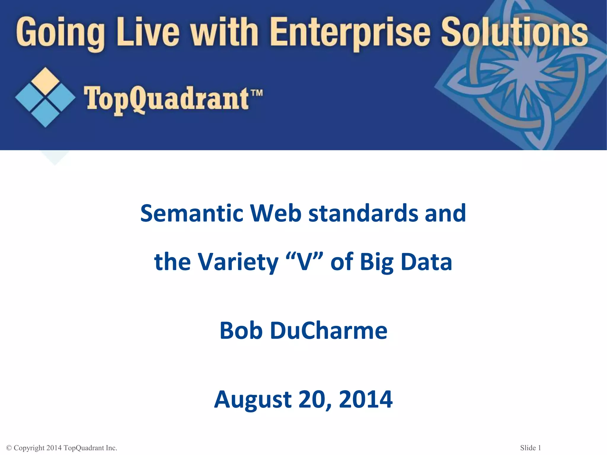 The document discusses the challenges of managing the variety of big data, highlighting the difficulties associated with schemas and how schemaless NoSQL databases address these issues. It provides an overview of RDF schemas, OWL, and middleware solutions for integrating and querying data across different sources. Additionally, it emphasizes the importance of flexible schema development and standardization to enhance data interoperability and facilitate the evolution of data structures.