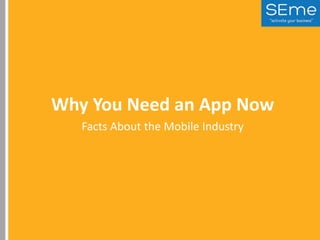 This document promotes creating a mobile app to grow a business. It highlights statistics showing the rise of mobile use and how apps can increase revenue, promote businesses, and improve customer loyalty. Features like maps, menus, reservations and ecommerce are suggested. Custom app development includes design, hosting, and submission to app stores. Advanced options involve analytics, push notifications and marketing support. Example apps for businesses, blogs, restaurants, music and education are provided. Contact information is given to discuss creating a custom app.