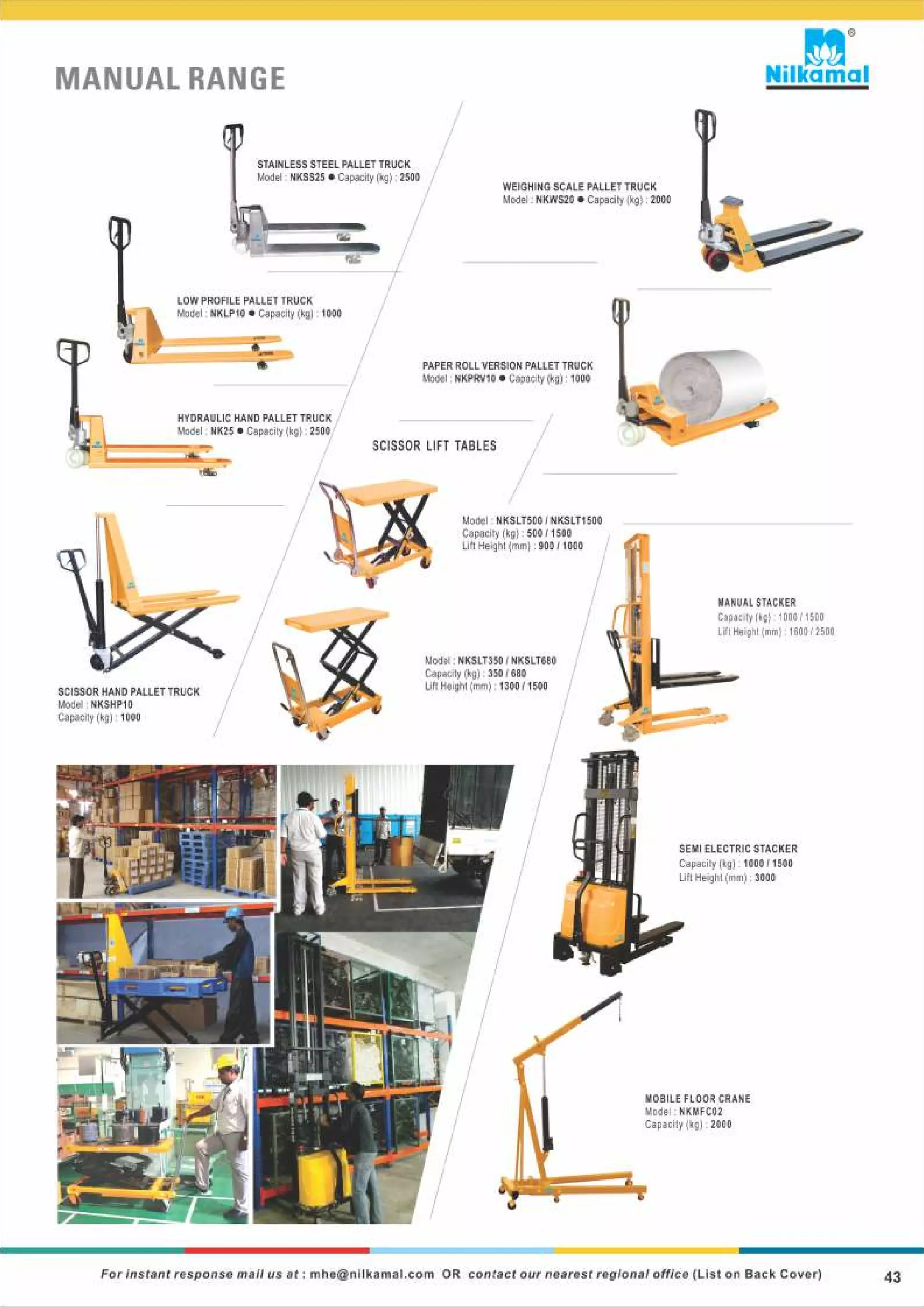 Model : NKSES1030 / NKSES1530 Capacity (in kg) : 1000 / 1500 Lift Height (in mm) : 3000