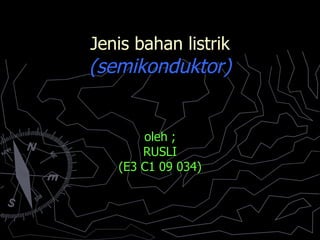 Semikonduktor adalah bahan dengan konduktivitas listrik yang berubah tergantung pada suhu dan dapat dimodifikasi dengan doping untuk meningkatkan konduktivitas. Jenis-jenis semikonduktor termasuk jenis intrinsik dan ekstrinsik, yang terdiri dari tipe-n dan tipe-p tergantung pada kelebihan atau kekurangan elektron. Transistor, sebagai aplikasi utama semikonduktor, berfungsi sebagai penguat dan saklar dalam berbagai sirkuit elektronik.