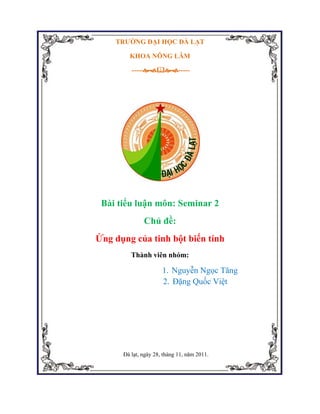 Tiểu luận trình bày về ứng dụng của tinh bột biến tính, bao gồm cấu tạo, tính chất, và các phương pháp biến tính như vật lý, hóa học và sinh học. Tinh bột có vai trò quan trọng trong công nghiệp thực phẩm và nhiều lĩnh vực khác nhau. Tài liệu cũng đề cập đến các ứng dụng cụ thể của tinh bột biến tính trong sản xuất thực phẩm và các ngành công nghiệp khác.