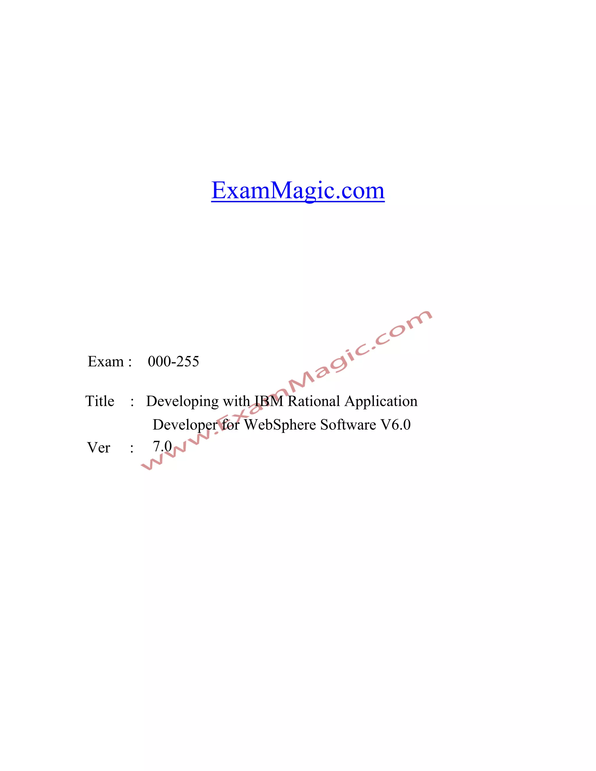 The document contains 36 questions and answers related to the exam "Developing with IBM Rational Application Developer for WebSphere Software V6.0". Each question provides multiple choice answers regarding tasks like creating Web and Java projects, configuring servers, debugging code, and using features within Rational Application Developer.