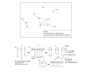 This document summarizes research on discovering spatial co-location patterns from geospatial data. It discusses how spatial data mining differs from classical data mining by considering attribute relationships between neighboring spatial objects. The paper focuses on extracting frequent co-occurrence rules between boolean spatial features from ecological datasets. It presents three approaches for modeling co-location rules problems - reference feature centric, window centric, and event centric. The Co-location Miner algorithm is introduced for mining co-location rules that satisfy minimum prevalence and conditional probability thresholds from the data.