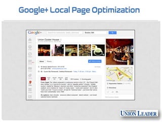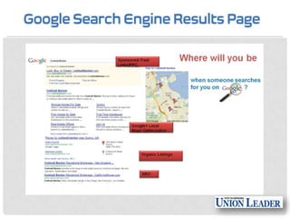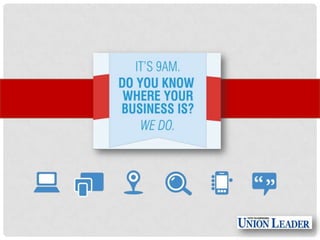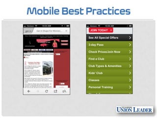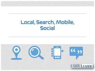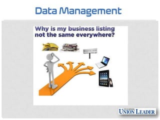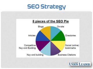 This document provides an overview of digital marketing strategies for small and medium-sized businesses. It discusses the importance of having an online presence, including a website and social media profiles. It emphasizes that consumers now research businesses online before making purchases. The document then covers specific strategies such as search engine optimization, social media engagement, online listings and reviews to help businesses get found online. It stresses measuring the effectiveness of digital marketing campaigns and being accessible on both desktop and mobile devices.