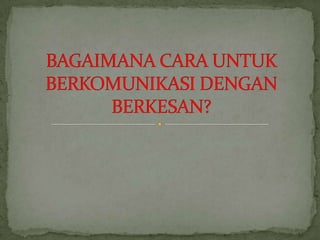 Dokumen ini memberikan panduan tentang cara berucap dengan baik, termasuk mengawal perasaan gemuruh, membuka ucapan dengan baik, dan menggunakan bahasa yang sesuai untuk pendengar. Penutup yang sempurna juga ditekankan sebagai elemen penting dalam menyampaikan mesej dengan efektif. Keseluruhannya, pengertian dan perhatian terhadap audiens merupakan kunci untuk menciptakan persepsi positif.