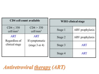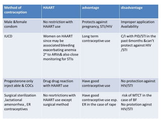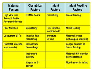 This document summarizes guidelines for the prevention of mother-to-child transmission (PMTCT) of HIV in Ethiopia. It outlines the epidemiology of HIV in women and children, defining MTCT and PMTCT. Risks of MTCT are highest without intervention, ranging from 20-45%. The national PMTCT strategy includes: primary HIV prevention; preventing unintended pregnancies in HIV+ women; preventing transmission from mother to child; and treatment, care and support of women and families. Key components are counseling and testing, antenatal care, labor/delivery care, postpartum care, infant care including ARV prophylaxis, and lifelong ART for eligible mothers. National guidelines have opted for WHO PMTCT