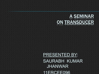 The document is a seminar presentation on transducers, defining them as devices that convert one form of energy into another, with subsections detailing types, classifications, applications, advantages, and disadvantages. Key examples discussed include resistance temperature detectors, thermistors, and strain gauges, each having distinct applications in measurement and control. The conclusion emphasizes the importance of transducers in various applications, including electronics and communications.