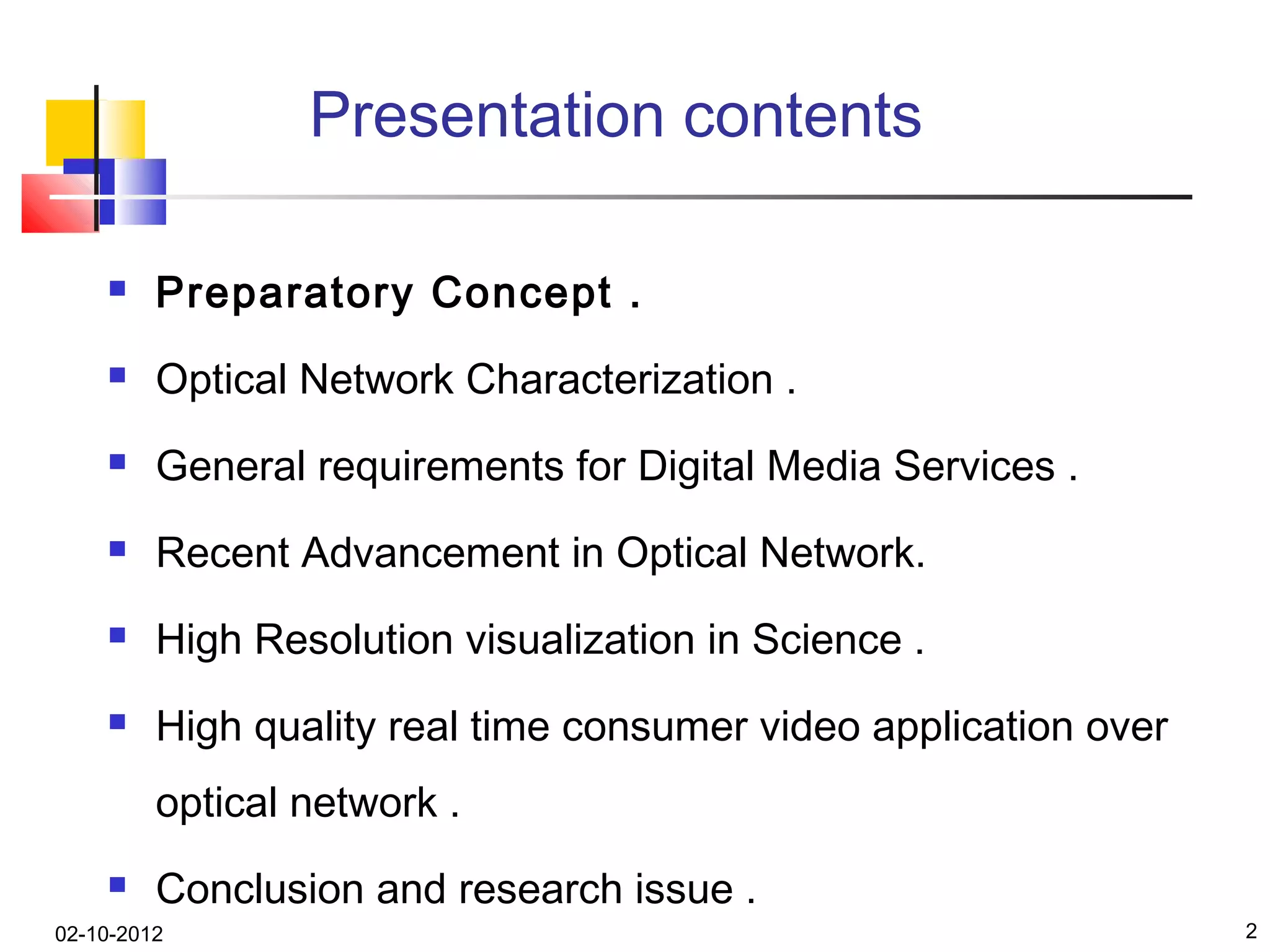 The document discusses the evolution of optical networks to support rich digital media services. It describes how optical networks are advancing to meet the large bandwidth and quality requirements of applications like high-resolution scientific visualization and high-quality consumer video. Specifically, it outlines how optical networks are developing higher speeds, longer transmission distances, and control systems to efficiently deliver high-bandwidth digital media to users.