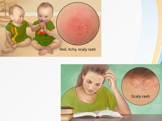 This document discusses ointments, which are semi-solid topical dosage forms used for therapeutic, protective, or cosmetic purposes. Ointments are greasy preparations containing 80% oil and 20% water that are applied to the skin or mucous membranes. They can contain dissolved, emulsified, or suspended drug ingredients. Ointments are classified based on penetration (epidermic, endodermic, diadermic) or therapeutic use (antibiotic, antifungal, anti-inflammatory). Ideal ointment bases are inert, compatible with skin pH, emollient, and release medication readily. Common bases include oleaginous (petrolatum, hard paraffin, liquid paraffin
