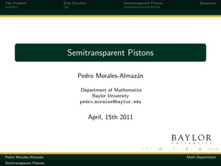 The document discusses the Casimir effect, a quantum field phenomenon arising from vacuum fluctuations, and introduces a mathematical model for calculating Casimir energy using a Riemannian manifold. It explains the definitions of the zeta function, the determination of eigenvalues, and various mathematical techniques used to analyze the Casimir force and its implications. Finally, it explores the behavior of semitransparent pistons in relation to the Casimir effect and provides insights into the stability of electrons and the significance of geometry in quantum contexts.