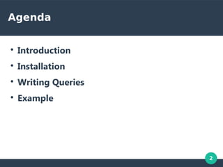 CodeQL is a code analysis platform that consists of the QL programming language, a CLI, libraries, and databases. It is used to analyze code for vulnerabilities and defects through queries written in QL. The document discusses installing CodeQL and the CLI, writing QL queries using logical formulas and predicates, and performing variant analysis through data and taint flow tracking to find issues. It provides an example query to find flows from environment variables to file openings.