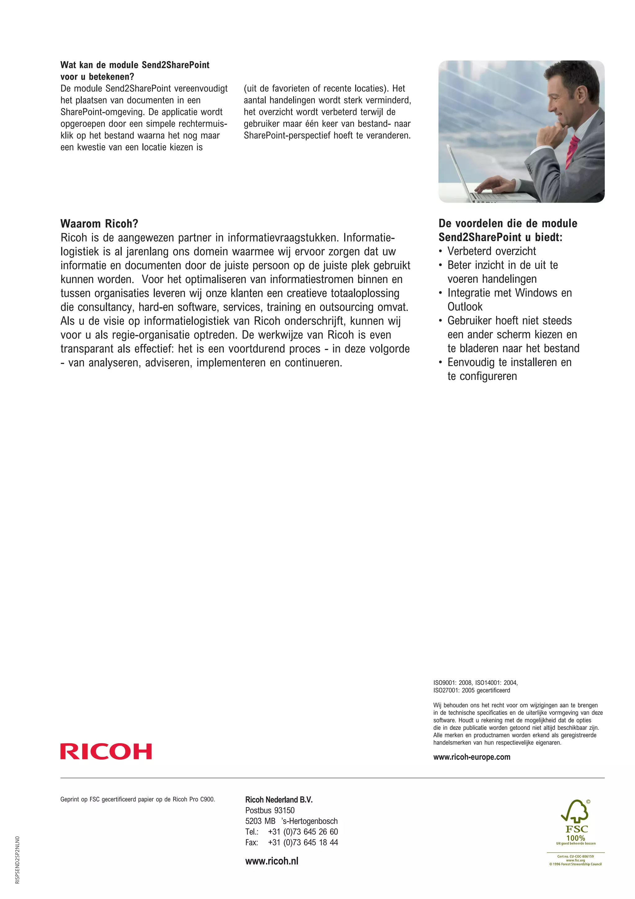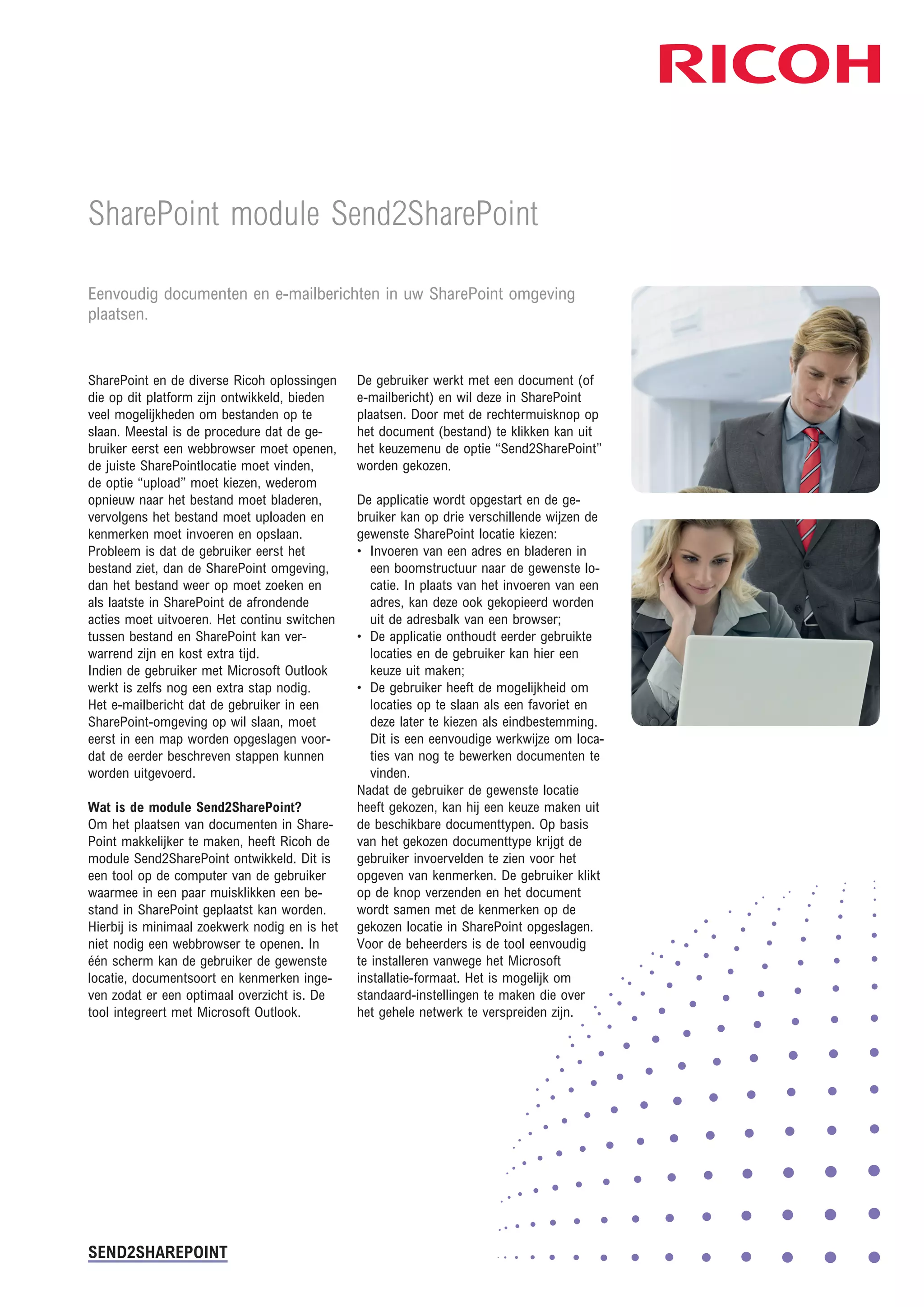 Ricoh is de aangewezen partner in informatievraagstukken. Informatie- send2sharepoint u biedt: