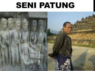 Seni patung adalah ekspresi ide dalam bentuk visual tiga dimensi dengan berbagai jenis dan tujuan, termasuk patung religi, monumen, arsitektur, dekorasi, seni, dan kerajinan. Terdapat tiga corak utama dalam seni patung: imitatif, deformatif, dan nonfiguratif, serta berbagai teknik pembuatan seperti membutsir, memahat, mencetak, dan konstruksi. Patung juga memiliki tujuan religius, simbolis, politik, dan ekspresif.