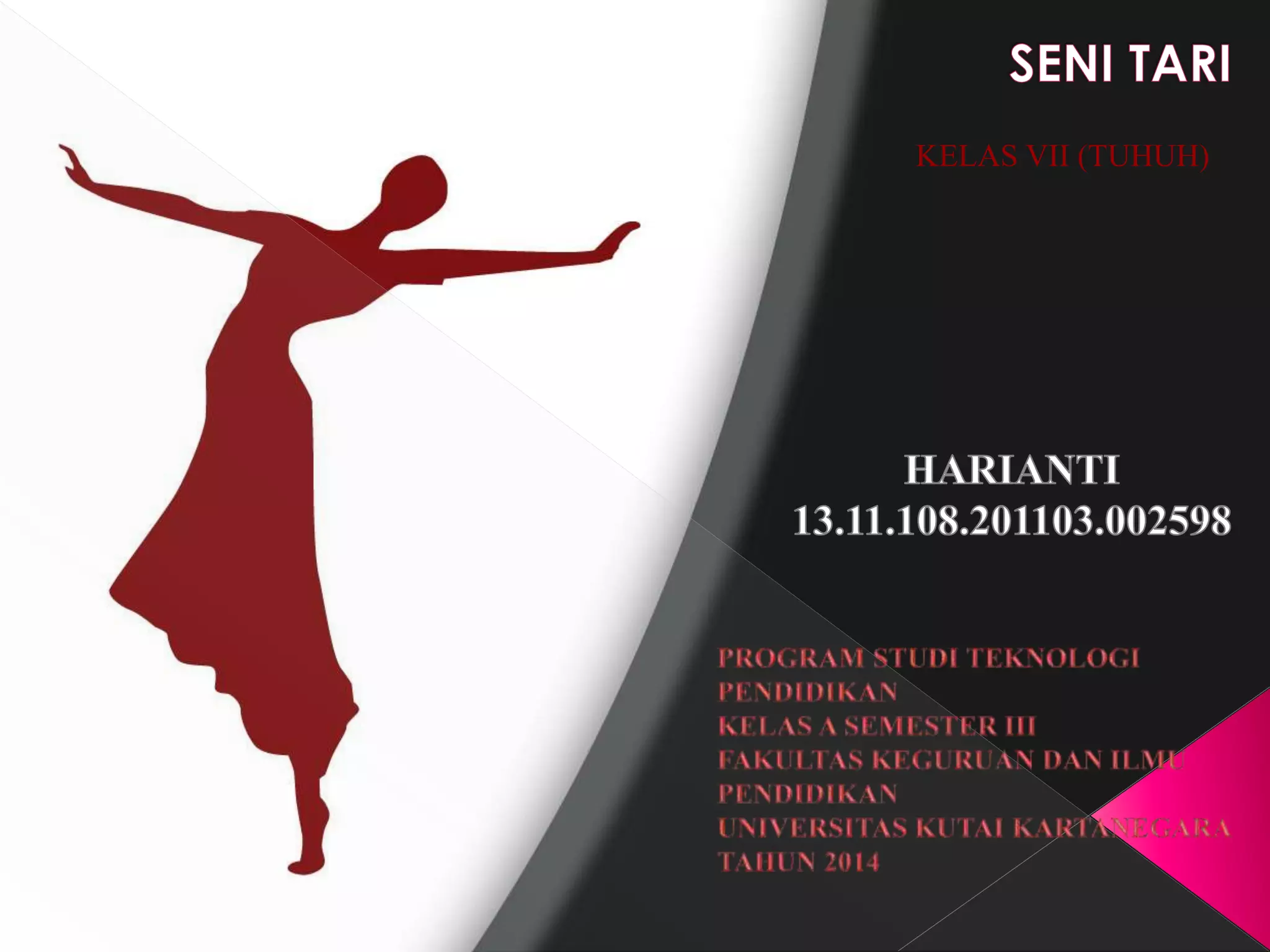 Dokumen ini membahas tentang pembelajaran seni tari untuk kelas VII, termasuk pengertian tari, elemen dasar seperti ruang, waktu, dan tenaga, serta jenis-jenis tari seperti tari tunggal, tari berpasangan, dan tari kelompok. Penekanan pada sikap menghargai dan pemahaman gerakan tari ditinjau dari unsur estetik dan ekspresif juga diuraikan. Selain itu, dokumen ini mencakup variasi pola lantai dalam tarian yang perlu diperhatikan dalam pertunjukan.