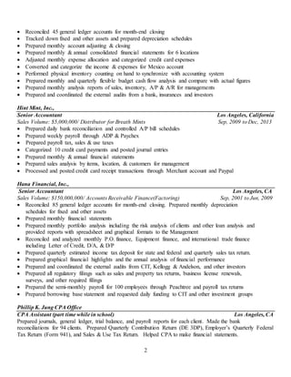 - It summarizes his skills and experiences preparing financial statements, reconciliations, payroll, and coordinating with auditors for multiple companies ranging in annual sales from $5 million to $150 million.