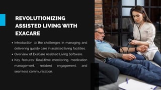 Exacare is an innovative software solution designed to enhance the management of assisted living and senior care facilities by providing features such as real-time health monitoring, medication management, and improved communication. The platform aims to increase operational efficiency and quality of care while simplifying financial oversight. Exacare offers demos, free trials, and promotional discounts for early adopters, inviting facilities to experience its benefits firsthand.