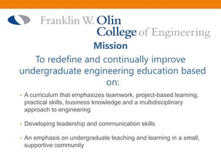 The document outlines a 24-hour project marathon conducted by the Olin College Autodesk SCOPE Team to simulate a year's worth of work on a project, describing the SCOPE program which engages students in significant engineering projects for clients over two semesters. It also provides details about the accelerated project experience and introduces ideas for possible areas of exploration for the team's year-long research project that were developed prior to meeting with their Autodesk liaisons.