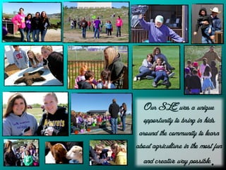 This is the presentation of my Senior Legacy Experience Project at Minarets High School. The project is titled "Spring Ag Day". We bussed in over 130 elementary school students from Kindergarten to fifth grade out to my school farm. The students were given the opportunity to learn about agriculture, and have fun rotating through several different stations that taught them the importance of our nation's number one industry.
