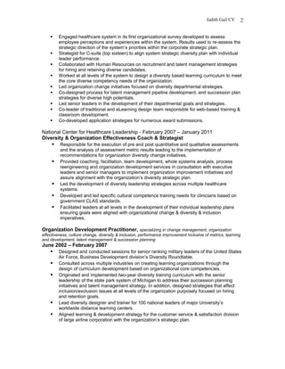 Judith Gail is an experienced organization development leader with over 20 years of experience facilitating organizational change through leadership development, culture change, and diversity and inclusion efforts. She has worked with various organizations in both the private and public sectors to design learning and development strategies, assess organizational culture, and implement change initiatives. Her background includes roles as a director of organization development, diversity and organization effectiveness coach, and adjunct professor teaching topics related to leadership, change management, and diversity.
