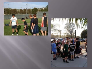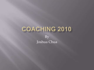 Joshua Chua coaches the Poway Youth Wrestling team. His goals are to share wrestling techniques, provide personal experiences, produce champions, and encourage a hard work ethic while having fun. His mentor is John Meyers, a 4-time state champion and Pan AM gold medalist. The team practices include warm-ups, drilling, live wrestling, and conditioning. Several wrestlers achieved success, including Danny DeMaria and Thomas Hinch winning state championships. Coaching has helped Joshua develop patience, leadership, and pride in giving back to future Poway wrestlers.
