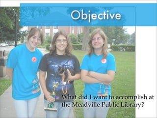 Brianna Hanley worked at the Meadville Public Library during their busiest time of the year. She accomplished putting away books as well as organizing crafts and community activities. Brianna thanks the library for allowing her to learn new skills and gain experiences that will help her in the future.