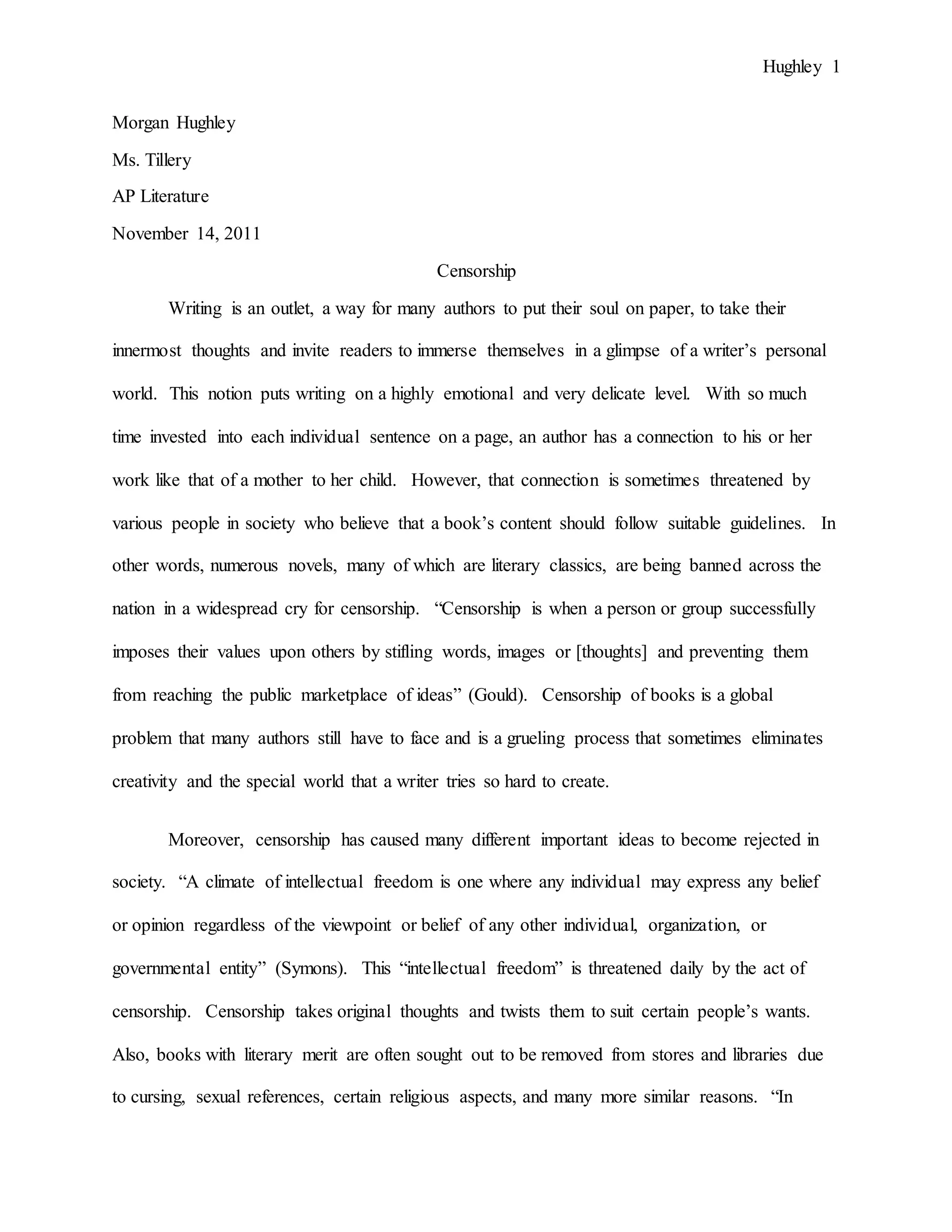 This document discusses the issue of censorship and provides several examples. It argues that censorship threatens freedom of expression and prevents important ideas from being shared. While censorship has existed throughout history, the Comstock Act of 1873 set the precedent for banning literature deemed sexually inappropriate in the US. The document also discusses several court cases around banning books in schools, including a landmark 1982 Supreme Court case that found students' civil rights were violated by a school board banning books. It notes that while censorship continues to be an issue, groups are working to prevent book banning and the internet has made it harder to censor ideas.