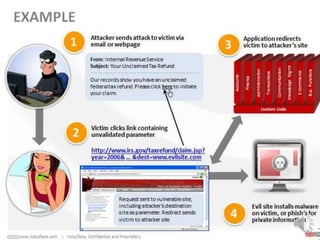 This document discusses the importance of protecting sensitive data and minimizing exposure. It defines sensitive data as information that must be safeguarded from unauthorized access, such as passwords, addresses, social security numbers, and credit card information. The document outlines laws and regulations that govern sensitive data protection and explains how data is often exposed through security flaws, intrusions, phishing, or social engineering. It recommends encrypting sensitive data, restricting access to authorized individuals only, and learning from past security incidents to strengthen protections.