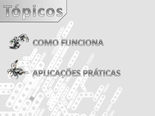 This document lists the names of 5 students - André Pereira, Duarte Sampaio, Filipe Chamorro, Francisco Val, and Nuno Silvestre. It also includes 3 URLs related to an announcement from HiTechnic, a company that makes components for the LEGO Mindstorms robotics platform. The work was completed for a class project under Professor Paulo Torcato.