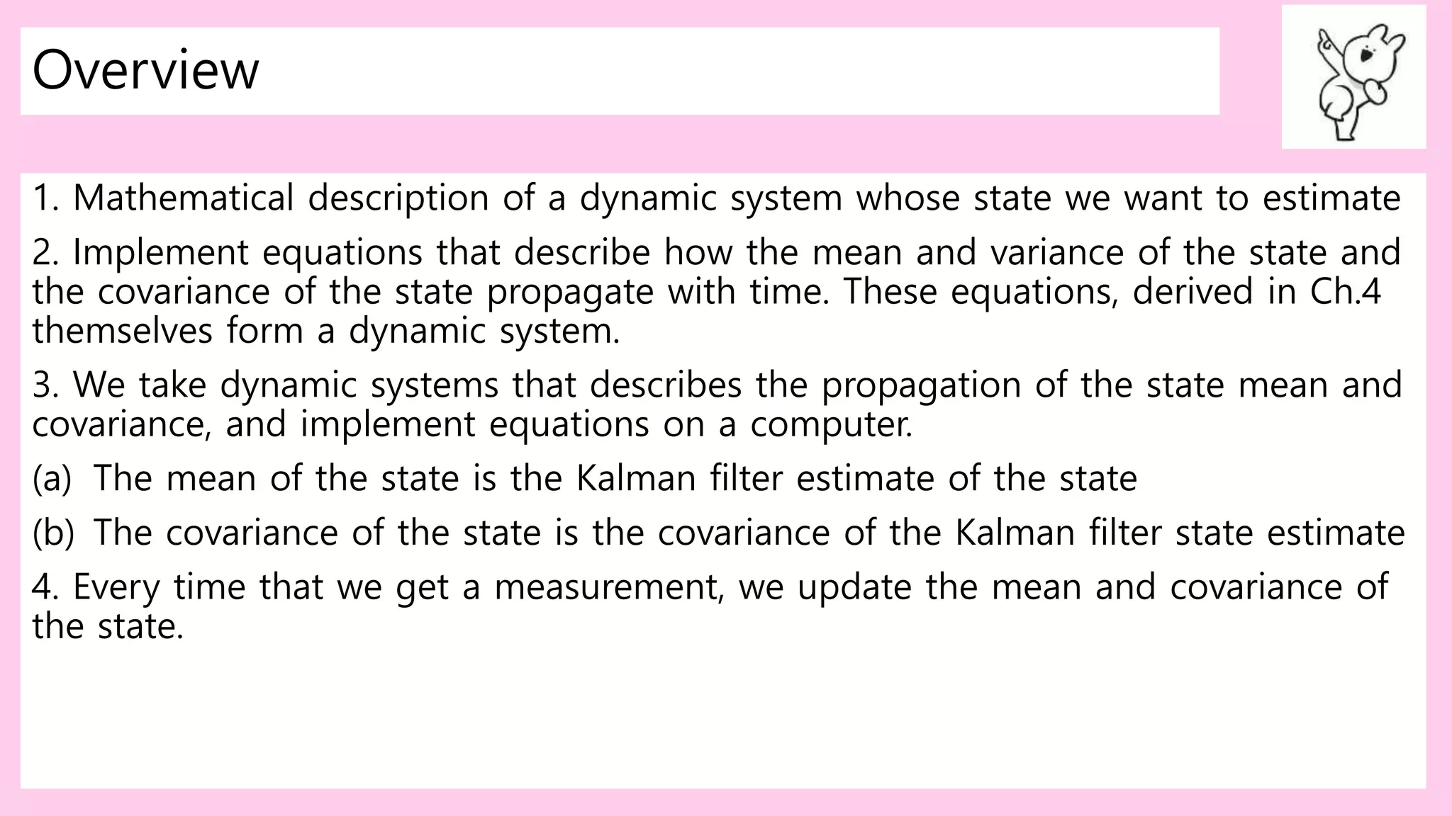 The document summarizes key concepts about the discrete-time Kalman filter. It describes how the Kalman filter uses a set of mathematical equations to estimate the state of a dynamic system based on a series of measurements over time that contain noise. These equations estimate the state mean and covariance to minimize the error between the true state and the estimated state. The derivation of the filter equations is shown, including the time update and measurement update equations. Issues like divergence due to modeling errors and numerical problems are discussed, along with remedies like adding fictitious process noise.