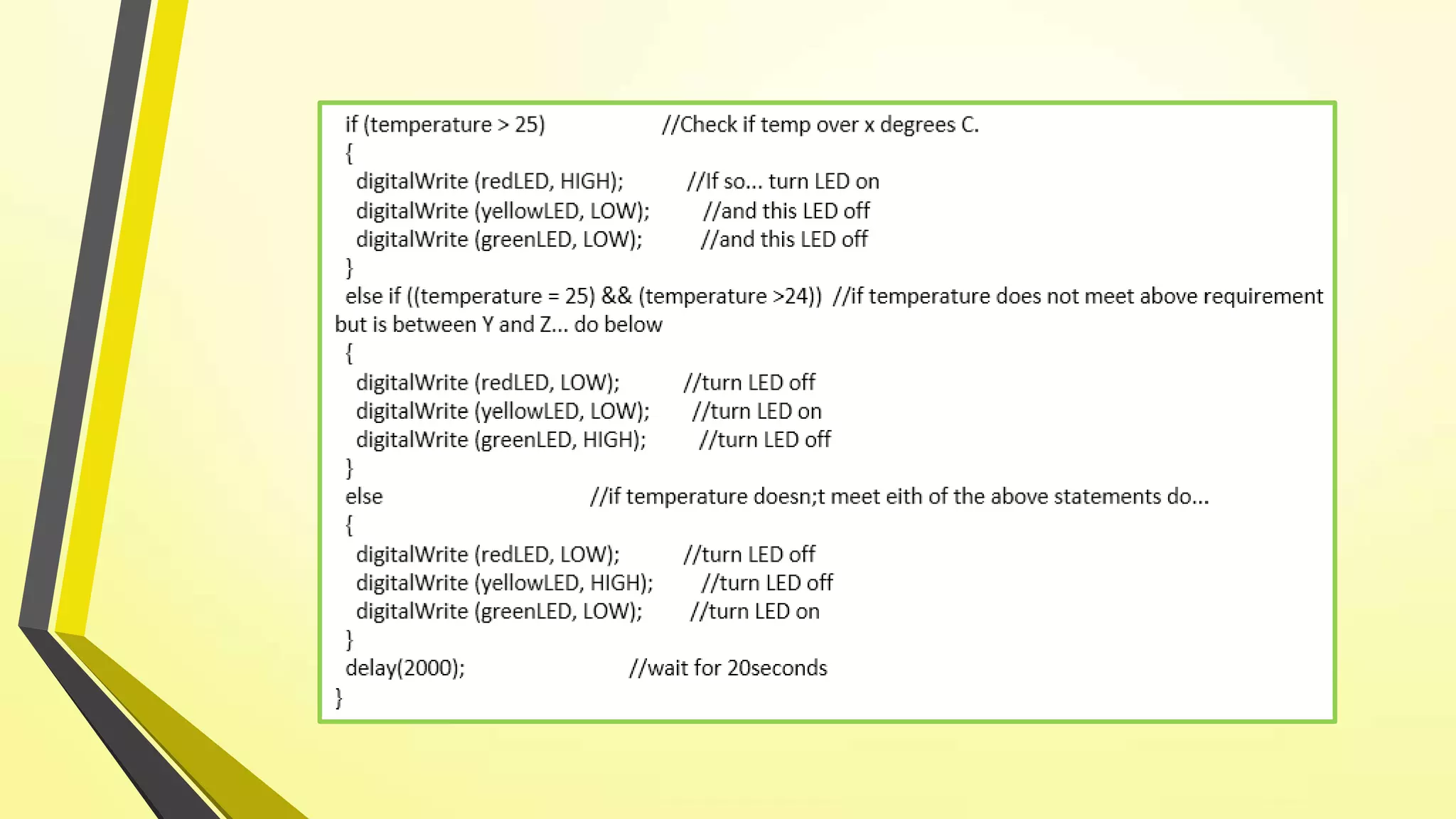 saat temperature ≤24°C, LED warna kuning menyala. Saat salah satu LED menyala