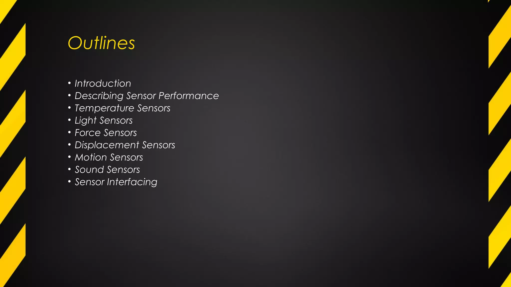 Sensors can be used to measure various physical properties by converting one physical quantity to another. Temperature, light, force, displacement, motion, and sound can all be measured. Sensor performance is described by its range, resolution, error, accuracy, precision, linearity, and sensitivity. Common sensor types include resistive thermometers, thermistors, photodiodes, strain gauges, potentiometers, and microphones. Sensor interfacing may be needed to produce output signals in the desired form such as a voltage.