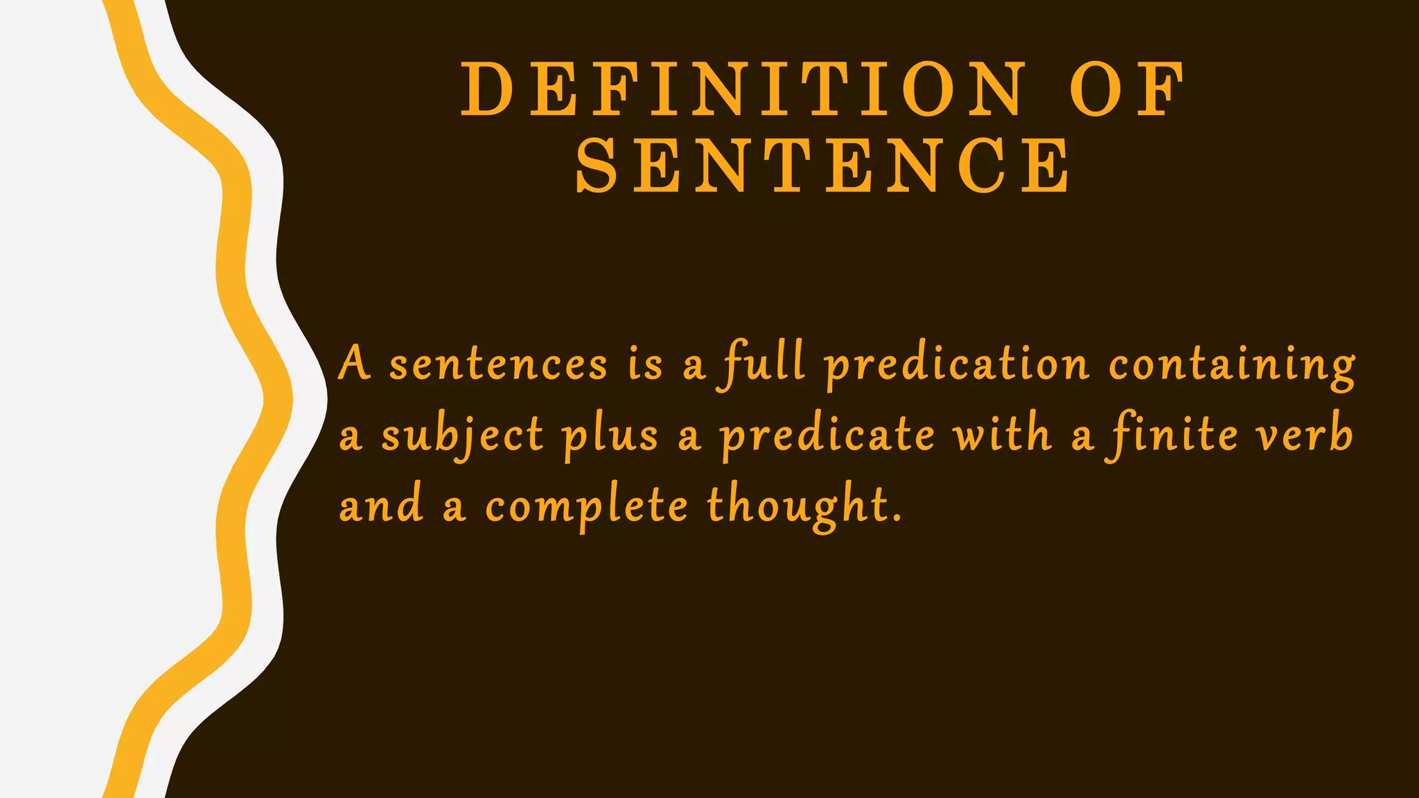 This document defines and provides examples of sentences, fragments, and clauses. A sentence contains a subject and predicate with a finite verb and complete thought. A fragment begins with a capital letter and ends with a mark but lacks a main clause. An example of a fragment is "When we got in the car." A clause contains a subject and verb, and can be either dependent or independent - a dependent clause cannot stand alone as a sentence.
