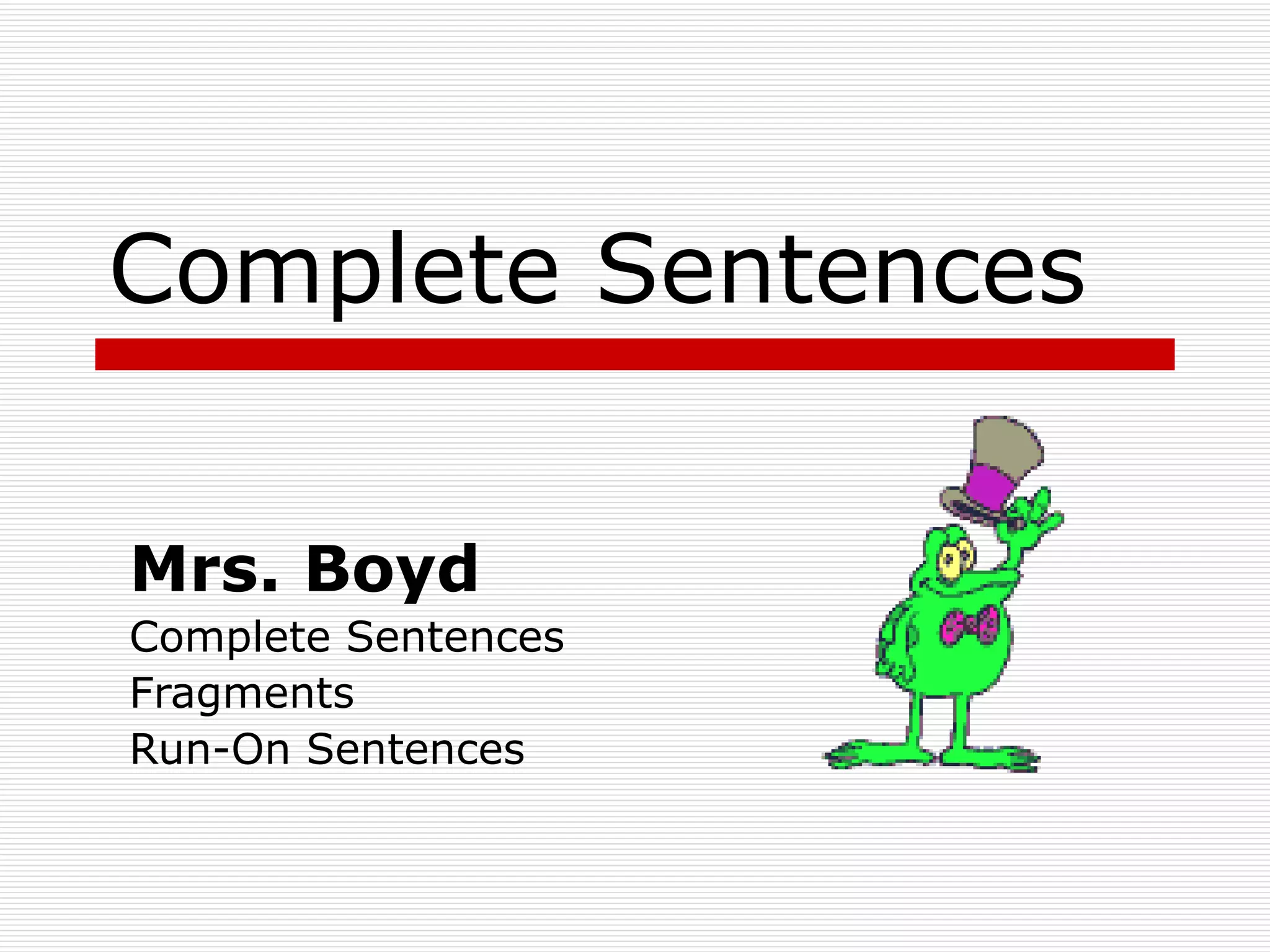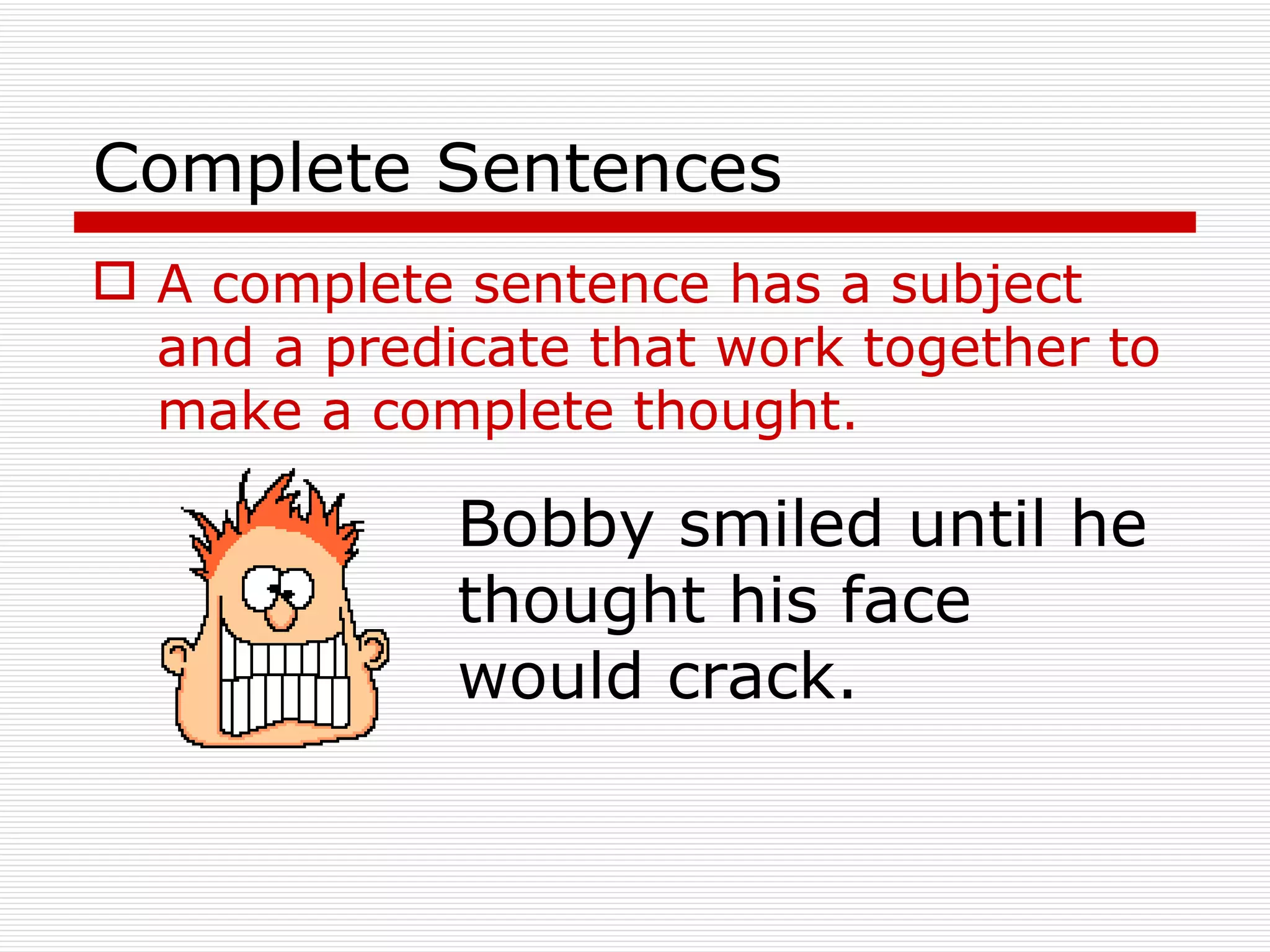 1) Complete sentences have a subject and predicate that form a complete thought.