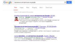 ● Позициониране (сортиране) - Когато потребителя търси, търсачката