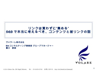 All Rights Reserved. Tel : 03-6409-6766 お問い合わせ: http://ml.seohacks.net/semnarpdf リンクをされるコンテンツってどんなのでしょう? ”リンクを買わずに、“集める 30 コラボネタ